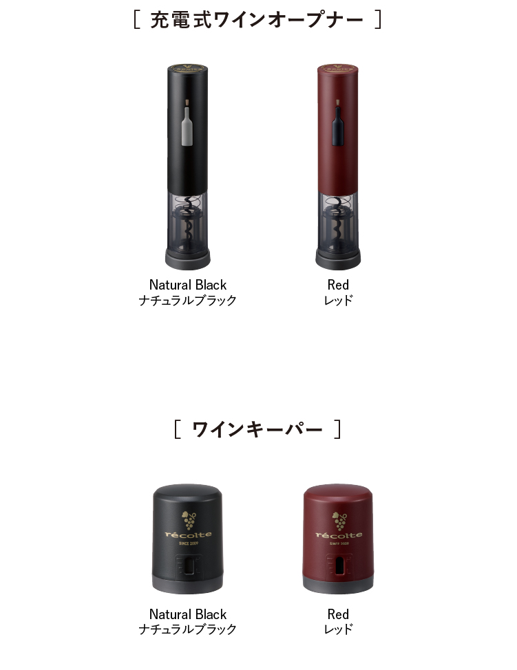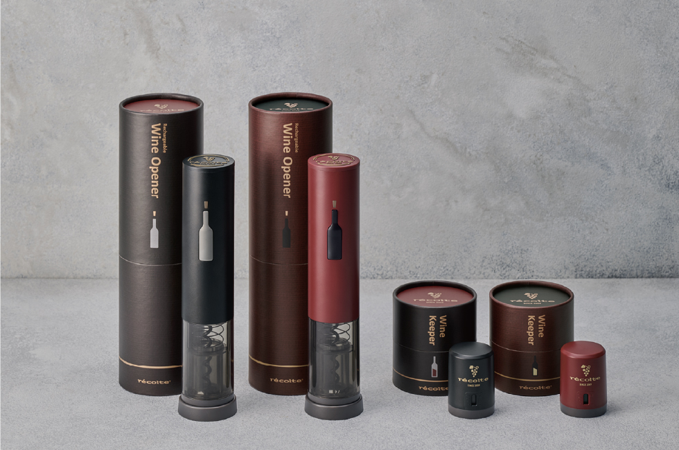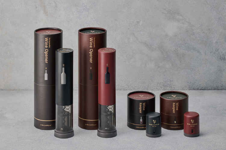 レコルトのロングセラーアイテム[イージーワインオープナー]と[イージーワインキーパー]がリニューアル。どちらもワインボトルと調和するナチュラルブラックとレッドの2色展開で、セットでお使いいただけます。筒状のパッケージは、ギフトにもぴったりです。