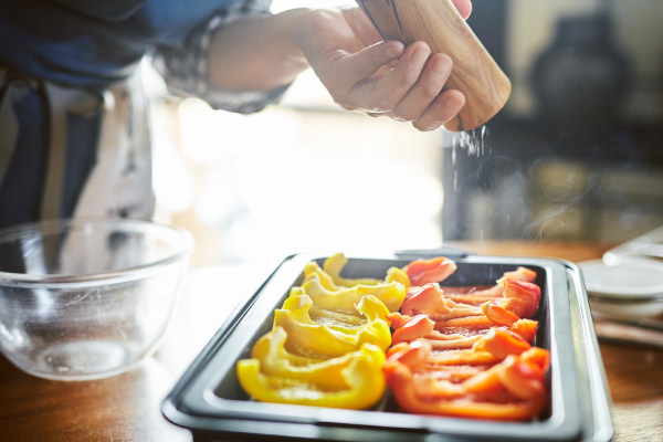 - パプリカの焦げが気になるときは、皮をむく時にキッチンペーパーでやさしくこすって取り除いてください。