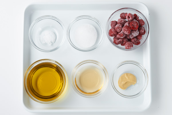 - 【ラズベリードレッシング】の材料を用意する。