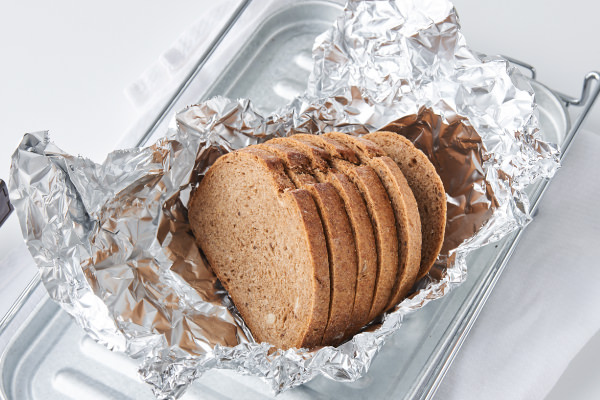 - ライ麦パンはアルミホイルに包んでトースターで温めます。カリッとトーストするのではなく、ほんのり温めるくらいがおいしいです。