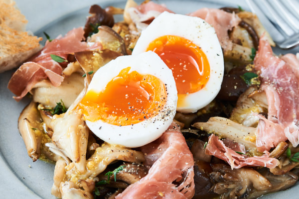 今では1年を通して手に入るきのこですが、多くの天然のきのこは秋に旬を迎えるものが多いと言われます。旬のきのこを味わうサラダは、ぜひ手作りのマスタードでドレッシングを作って召し上がってください。作ってみると意外と簡単な手作りマスタードはピリッと辛みの効いた風味豊かな味わいです。きのこと相性がぴったりの生ハムと合わせれば最高のごちそう。酸味のあるカンパーニュを添えていただくのがおすすめです。