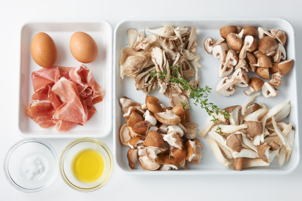 - きのこはいろんな品種を使うと、風味とコクが増します。秋の味わいをお楽しみください。