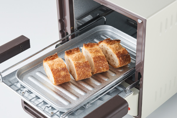 - バゲットをスライスしてトースターで焼き、サラダに添えていただく。