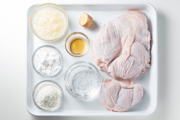 食材の旨味を引き出してくれる万能調味料として人気の調味料“塩麹”で味付けをします。塩麹とは、麹に塩と水を合わせて発酵させたペースト状の調味料。塩麹自体に旨味と甘みがあるので、下味はすりおろしたしょうがを加えるだけで十分です。しょうゆやにんにくの味付けよりあっさりしていながらも旨味たっぷりでジューシーな味わいの塩麹から揚げ。お好みで、パクチーダレや、味噌ダレでアレンジもお楽しみください。