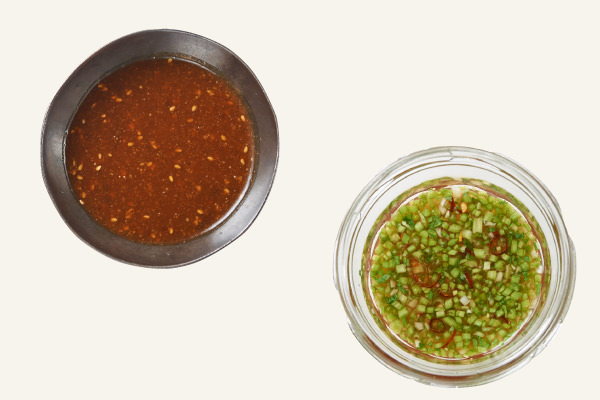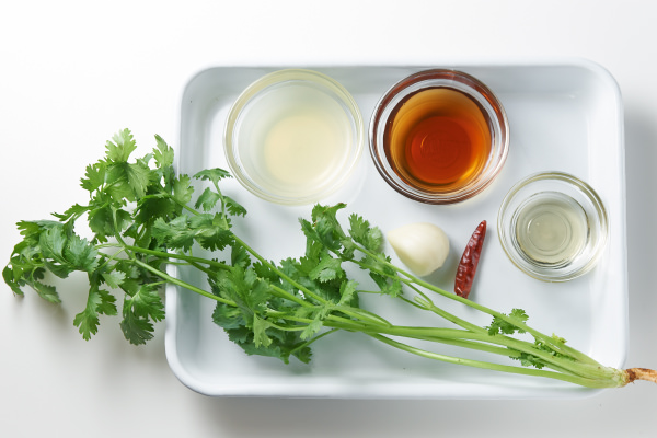 - 下味をつけている間に【パクチーダレ】の材料を用意して、全ての材料を混ぜ合わせる。
