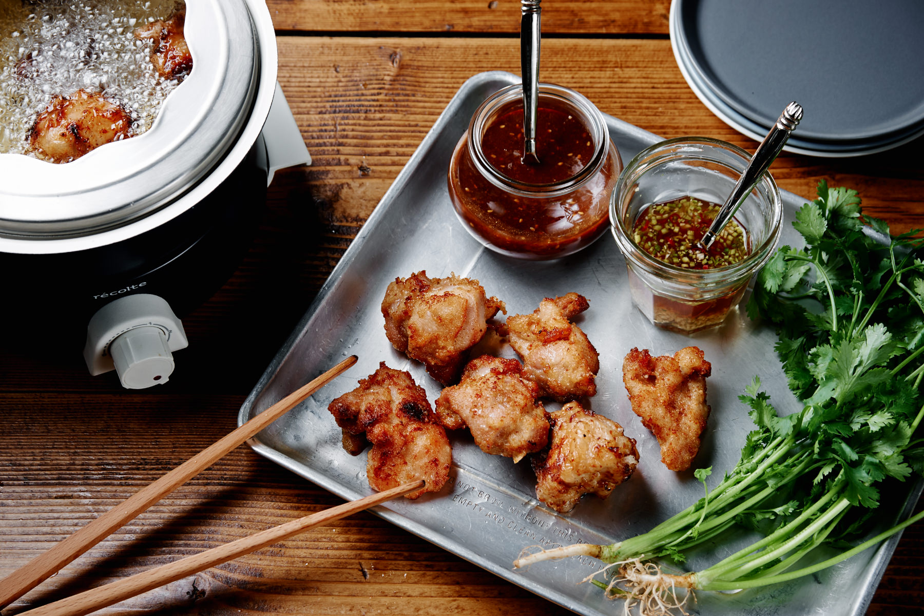 アウトドア料理から家庭料理、スイーツまで幅広い料理を得意とするフードコーディネーター・みなくちなほこさんに[ポットデュオ フェット]で作る、3 種類のから揚げと、アレンジを楽しむタレをご紹介いただきます。美味しいのはもちろん、[ポットデュオ フェット]ならテーブルで揚げたてアツアツが楽しめます!食卓でくつろぎながら、食べる分ずつ揚げてアツアツをほおばる。そんな至福の時間を存分に味わってくださいね。