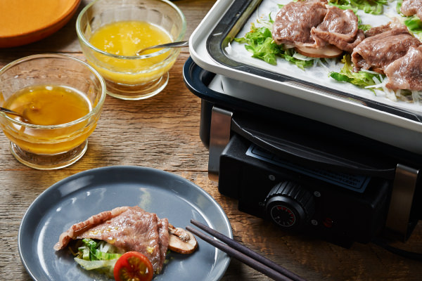 - ②が沸騰して蒸気があがったら、④のプレートをのせてフタをし、牛肉に火が通るまで2~3分加熱する。