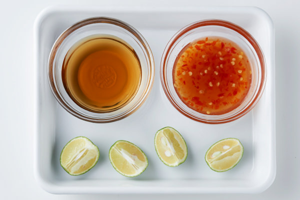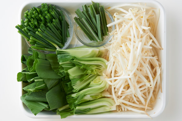 - もやし、ちんげん菜、万能ねぎを加える。具に火が通ったら器に取り、すだちの絞り汁、スイートチリソース、ナンプラーなどを好みでかけていただく。