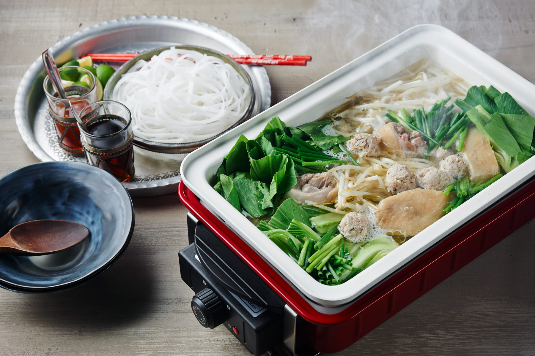 - 鍋を楽しんだら残りのスープでシメる。フォーを入れ、1~2分温めていただく。
