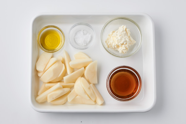 - 【グリルポテトのサワークリーム&メープルシロップ添え】を作る。材料を準備する。