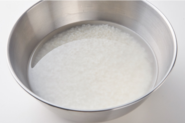 - もち米は洗い、3時間~ひと晩、水に浸けておく。ざるにあげて水をきる。