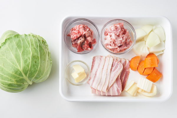 - やわらかい春キャベツを使う時は、煮込む時間を短くしてください。