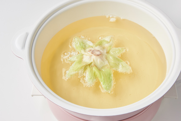 - ふきのとうは、花を開いて揚げると見た目にもかわいく、花びらのさくっとした食感もおいしいです。
