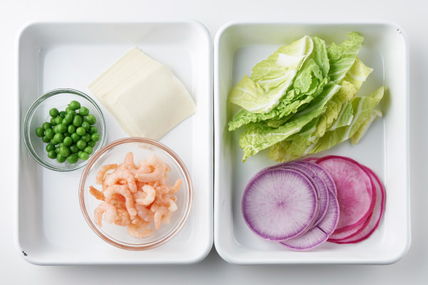 - 【皮とトッピングの材料】【蒸し野菜の材料】を準備する。