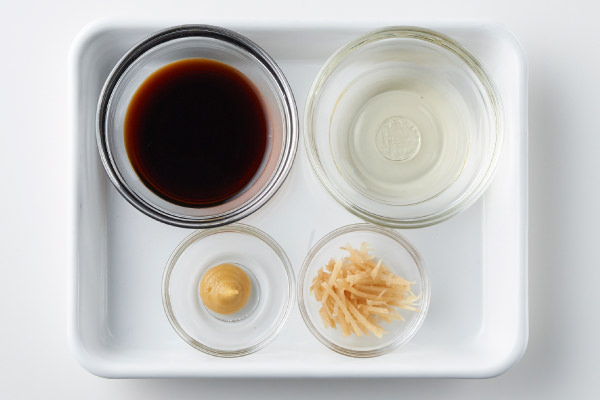 - しょうゆ、酢、からし、生姜のせん切り