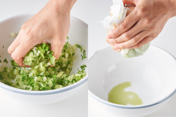 - 仕上がりが水っぽくならないよう、セロリやキムチは水分を絞ってください。