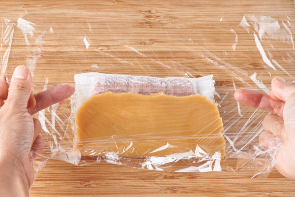 - ラップでぴったり包んだら、ポリ袋などに入れ、冷蔵庫で8〜12時間おく。