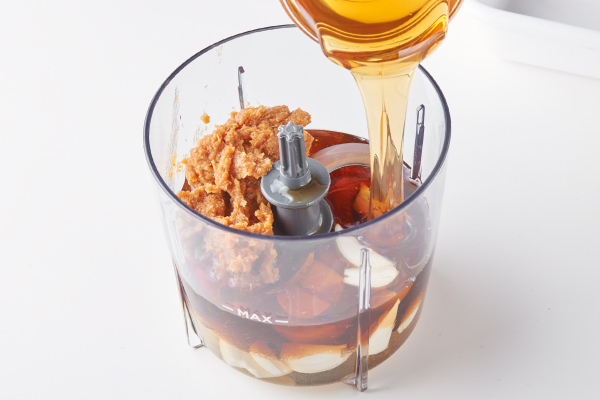 - 連続プッシュして、なめらかになるまで撹拌したら、ドレッシングの完成(POINT★2)。