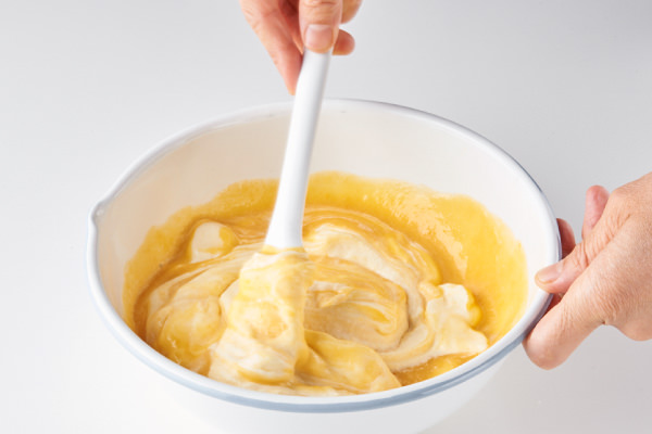 - ③のボウルに④を加えて混ぜ合わせる。