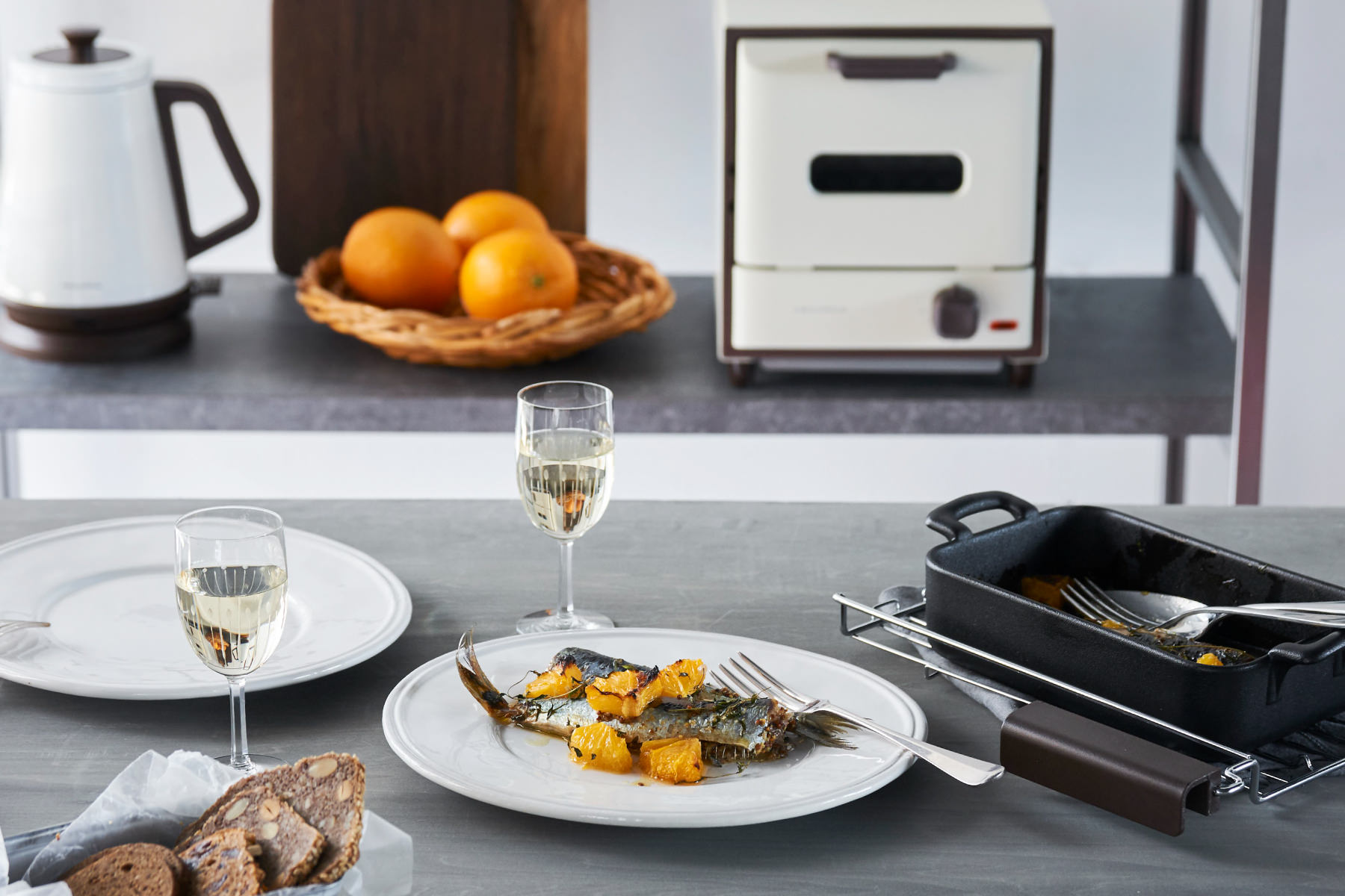イワシをよく食べる国、スペインの料理をシンプルにアレンジした、見た目も華やかなバルつまみ。イワシとオレンジを[スライドラックオーブン デリカ]でグリルするだけの簡単レシピです。ふっくらと香ばしく焼きあがったイワシに、オレンジのやわらかな酸味のある果汁がソースのようにからんで爽やかな味わい。イワシのお腹に塗った粒マスタードが味のアクセントになり、臭みを消す効果も。