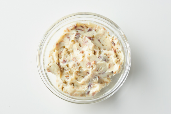 - アンチョビ&ケイパーバターを作る。全ての材料を混ぜ合わせる。