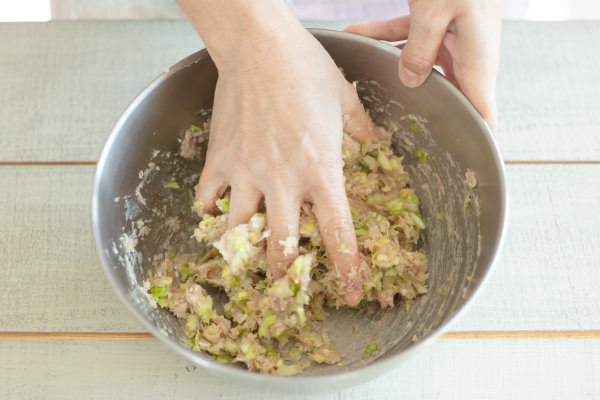 - ④とみじん切りにした長ねぎも加え、混ぜ合わせる。