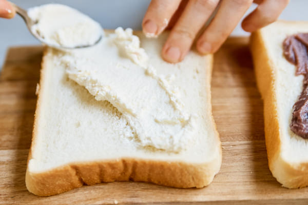 - ③のマスカルポーネチーズを塗った食パンを1枚のせる。