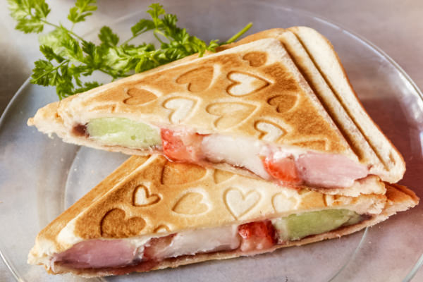 - いちごは大きめを使うと、ホットサンドを切った時の断面がきれいです。