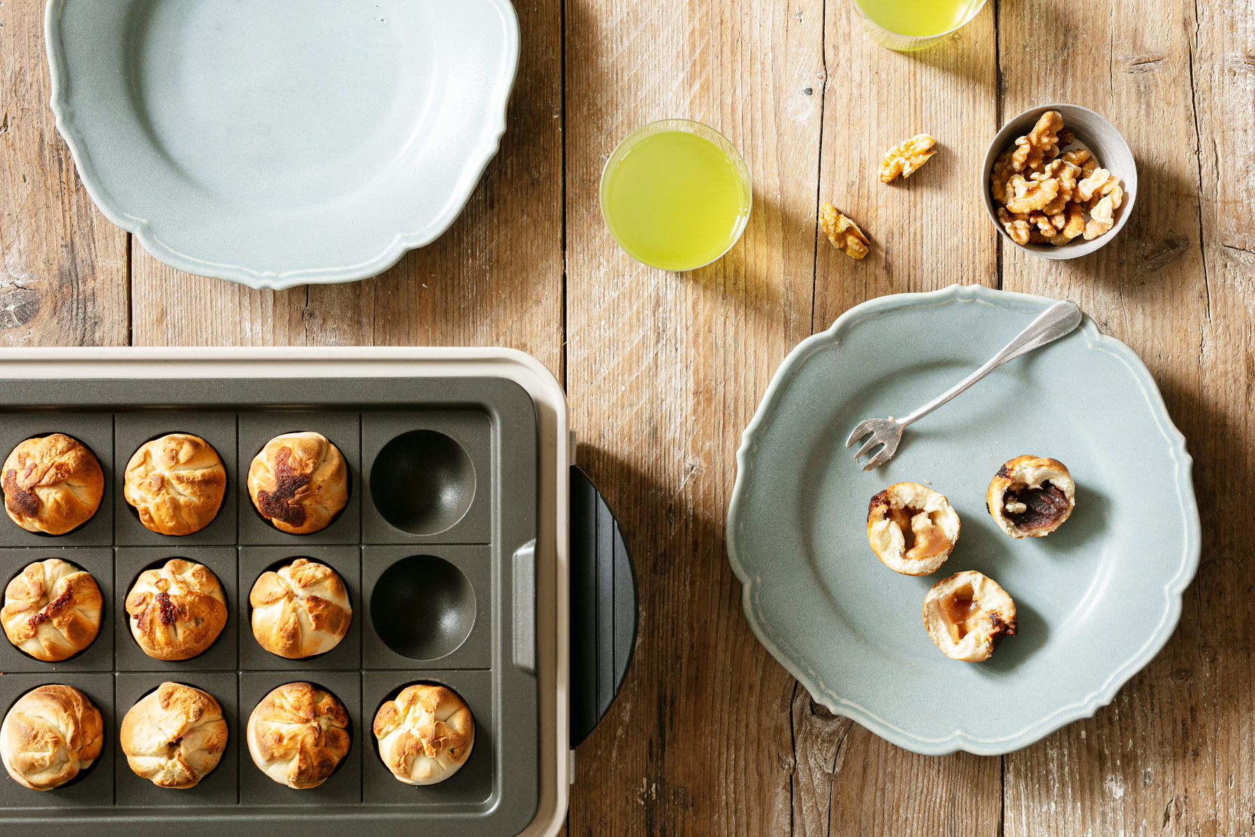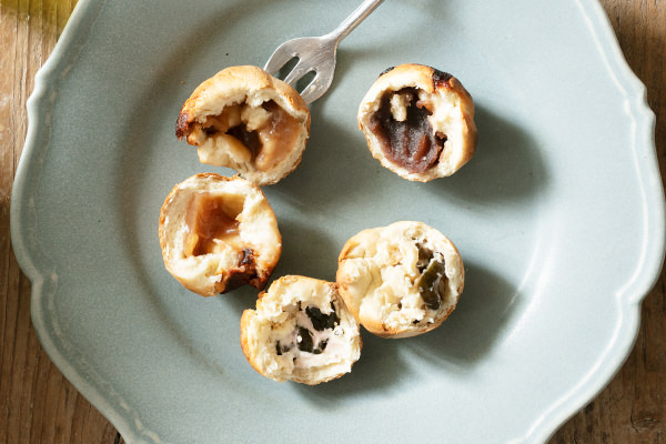 野沢菜やあんこがぎっしり詰まった「おやき」は、信州の郷土料理。地元では囲炉裏で焼いたり、せいろで蒸して食べるおやきを、今回は真藤さんが[ホームバーベキュー]の[たこ焼きプレート]で焼くレシピを教えてくれました! おなじみの平たい形ではなく、小籠包みたいにまん丸に包んで焼きます。全方位でかりっかり、中はほっくほく。甘いあんと、しょっぱめのあんを用意して、水出し緑茶を合わせれば、ちょっと大人な夏おやつに。