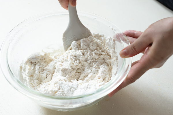 - ある程度まとまってきたら、手で生地をひとまとめにする。