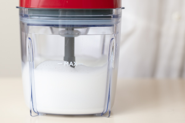 - カップの中が汚れていたり、水気がついていたりするとメレンゲが泡立たないので、カップはよく洗ってふいてください。