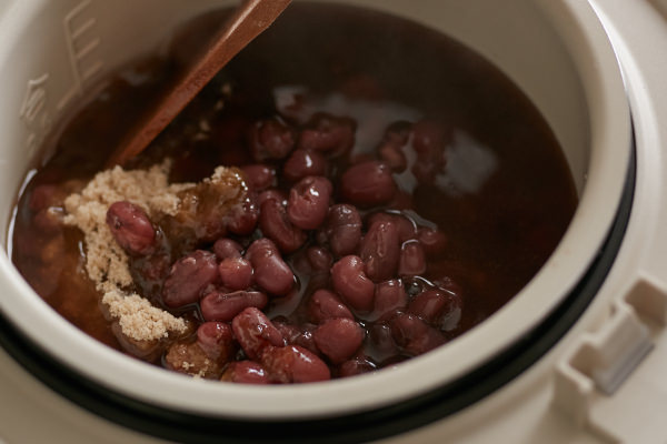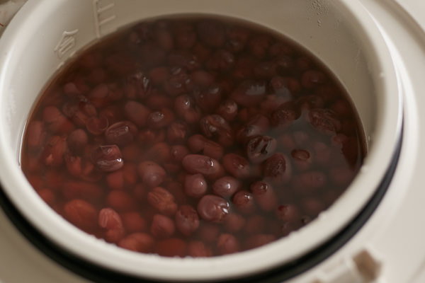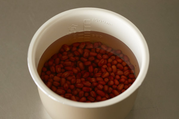 - 小豆はたっぷりの水(分量外)に一晩浸ける(12 時間以上)。