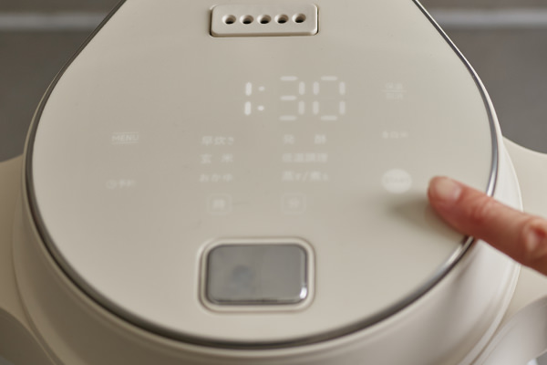 - フタを閉じ、再び「おかゆ」を選択し、「1時間30分」にセットして加熱する。