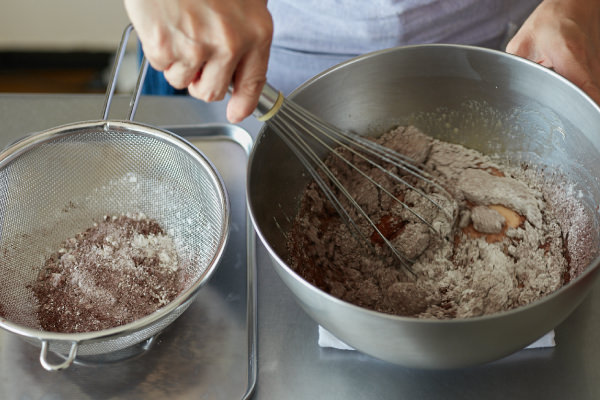 - 【A】を合わせてふるい入れ、ダマがなくなるまでさっくりと混ぜる。