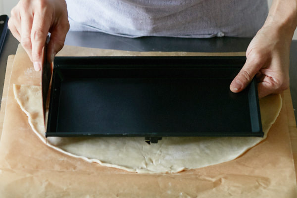- パイシートの端から1cmの部分には具をのせずに焼くと、パイの端がふくらんで焼き上がりがきれいに仕上がります。
