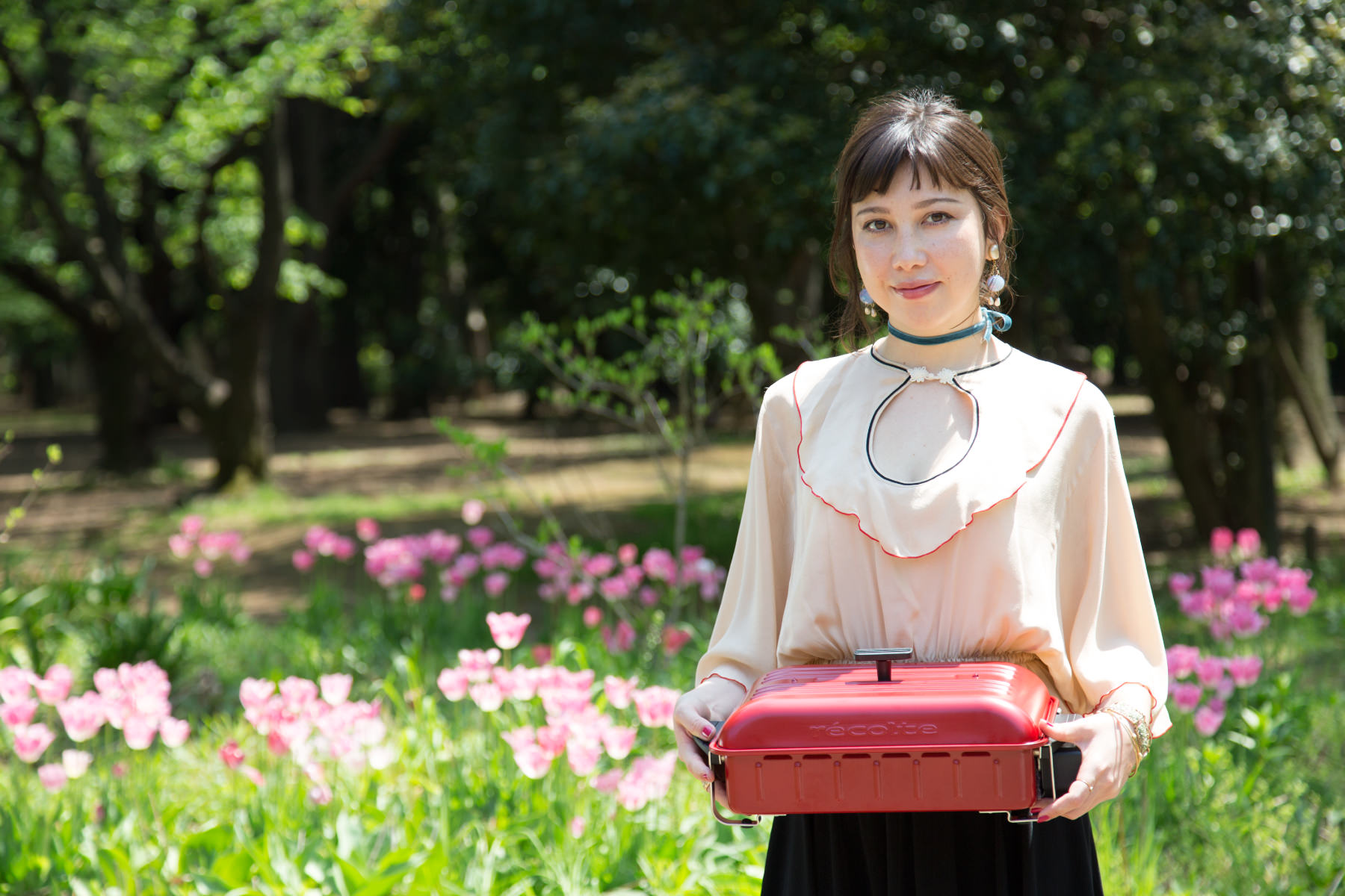 ダイアナチアキ: 私が贈る相手に選んだのは、モデル仲間のシャウラです。彼女とは仕事で知り合ったのですが、お互いDJとして活動していることもあり、自然と仲良くなりました。一緒にライブを見に行ったりご飯を食べに行ったりすることもあって、7、8年くらいの付き合いになります。音楽イベントの現場でよく一緒になるので、特別会う約束をしていなくても、現場に行くといつでも会える。それくらい気の合う友人です。シャウラはスポーツやアウトドアが好きで、料理上手。とても健康的でアクティブな子なんです。「ホームバーベキュー」を選んだのは、シャウラのSNSでホームパーティーをしている写真を見たことがあり、友達が多い彼女の家に、パーティー用のアイテムがあると便利かな、と思ったから。さらに決め手は、この赤色! 赤は私が大好きな色で、私からのプレゼント、という主張を込めたくて(笑)。誰かに贈り物をするときは、いつもどこかに私っぽさを取り入れるようにしているんです。それにキッチンまわりに赤色があると、華やかな気分になって、料理が楽しくなるかなと思って。シャウラはハンバーガーが好きなので、これを使って、パーティーで作ってほしいです!