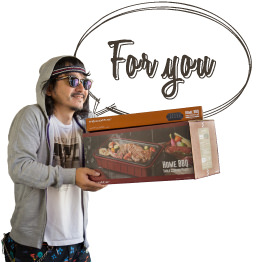 かせきさいだぁ:僕が贈る相手は、料理のレシピをラップに乗せていろんな活動をしている、DJみそしるとMCごはん、通称“おみそはん” です。彼女とは2014年にBoseが主催する岡山県の廃校フェス「でゑれ~祭」で出会い、そこからずっと交流が続いています。以前からおもしろそうな子だな、と注目をしていたんですが、そのフェスで初めて彼女の活動の経緯を聞いたんですよね。料理や食の楽しさをもっと広めたい、という想いを持っていること、大学の卒業制作として発表した作品が話題になり、デビューをしたこと……。そうしたバックグラウンドをおみそはんから聞いて、素直にすごいなぁと思って。HIPHOPは自由なものだと信じて僕も活動を続けていたんですが、こんなやり方もあるんだ! と、すごく衝撃を受けたのを覚えています。だから、今回誰に贈ろう? って考えたとき、僕のなかでは、おみそはん一択でしたね。[ホームバーベキュー]と[たこ焼きプレート]は、以前からパーティーをしましょう、という話をしていたので、これを機にたこ焼きパーティーができたらいいな、と思い選びました。おみそはんだったら、ユニークなたこ焼きを作ってくれそうですしね! 僕は時々インスタグラムで、「質素だけど、楽しくておいしい」というコンセプトで“質素亭” というメニューをあげているんですが、パーティーがあったら、それをふるまいます(笑)。大体はコンビニ飯を自分でアレンジして作るものか、レトルトカレーなんですが……おいしいんですよね。おみそはん、ぜひ今度一緒にパーティーしましょう~!