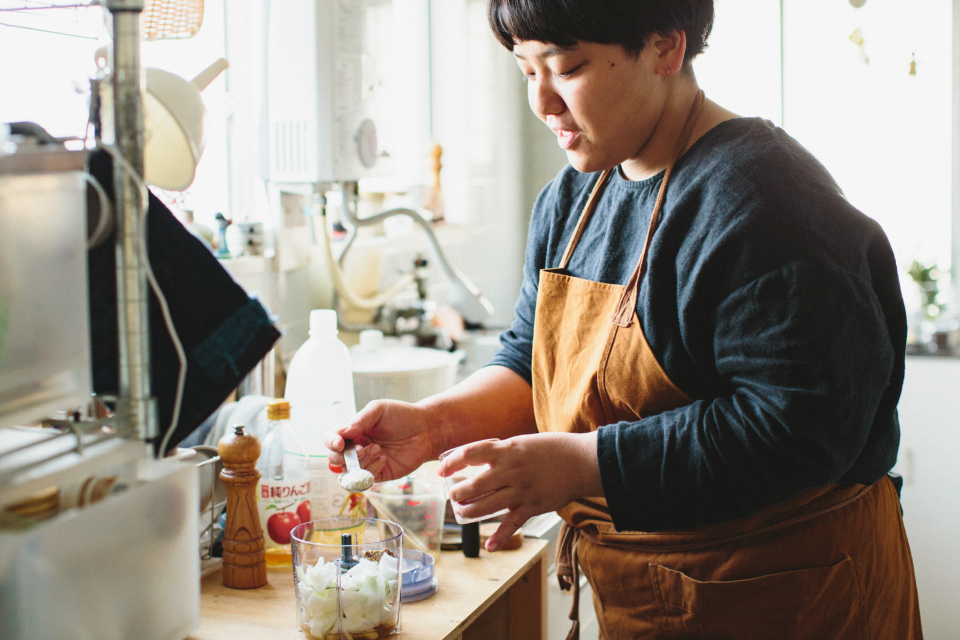 大塩(以下O):実家が伊豆の旅館だったので、小さい頃から料理には触れていましたが、特に好きという意識はなく、専門学校も服飾系に進みました。卒業後もアパレル会社に就職。でも、つまらなくてすぐ辞めてしまい……。そのタイミングで精進料理の先生と知り合い、先生の紹介で料理家のたかはしよしこさんに出会いました。よしこさんの下で3年半ほどアシスタントをしたのですが、辛いことがまったくなく、毎日が楽しくて楽しくて。気づいたら独立して今に至る感じです(笑)。