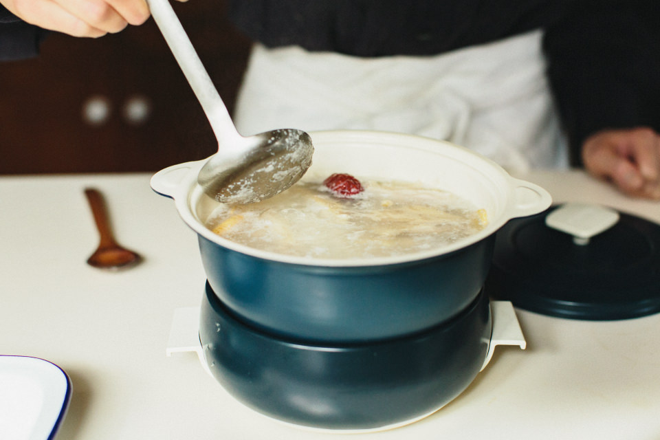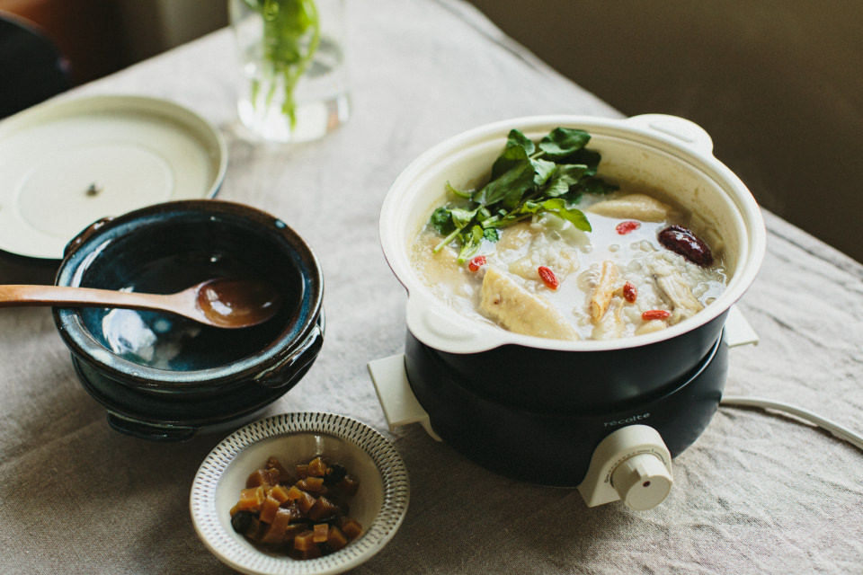 Y:参鶏湯はお酒を飲んだ翌日、二日酔いのときに出てくると最高なんです。身体も心も温まって、元気になります。「ポットデュオ フェット」で作れば、食卓であつあつが食べられるのでさらにいいですね。健康的な朝食で、今日も1日頑張れそうです!