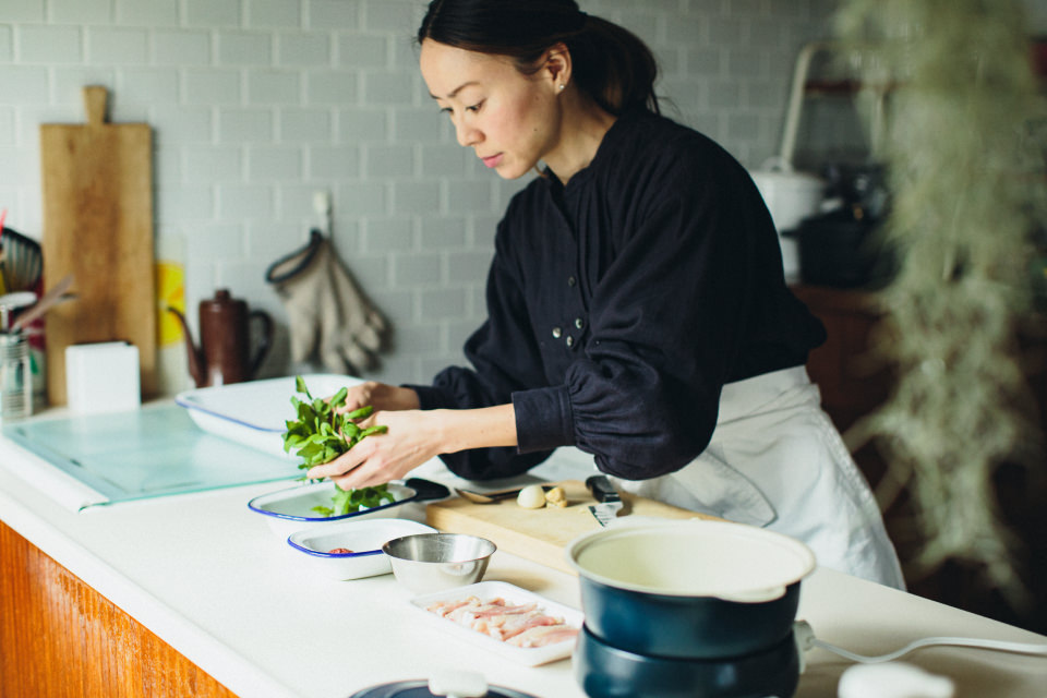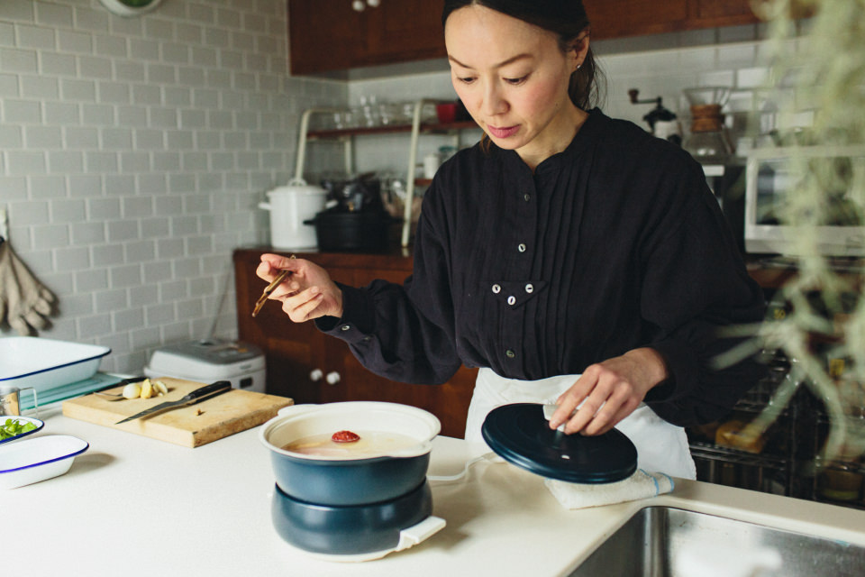 W:結婚当初は料理雑誌とにらめっこしていましたよ(笑)。料理好きになったきっかけは、品揃えが豊富で鮮度の高い食材が入手できるスーパーマーケットの近くに引っ越したこと。そして料理を作っていくうちに“食”の大切さに気づいて、娘が生まれてからはもっときちんと考えて料理するようになって。その考えをかたちにしたのが、1年前に立ち上げた「HOME KITCHEN PHARMACY」です。薬膳やアーユルヴェーダを通して、キッチンから広がる健康的なライフスタイルを提案するプロジェクトで、講座や料理教室、参鶏湯のワークショップを開催しています。参鶏湯は、5年ほど前に友人宅で食べておいしさに衝撃を受け、家で作ってみたら娘に好評だったのがきっかけで夢中になったんです。高麗人参やなつめなどの生薬は、日帰りで韓国まで買い出しに行ったりもします。