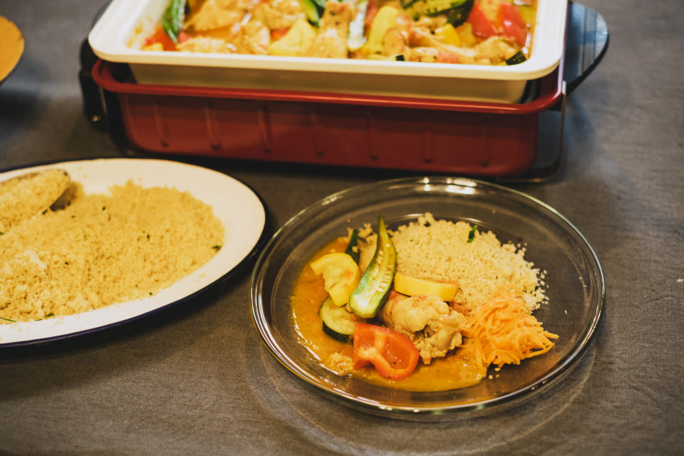 N:出かけたときと焼き鳥を食べたいとき以外は、家で作って夫婦で食べます。さすがに焼き鳥の炭火の味は家で再現できないので(笑)。でも忙しいときは無理をせず、手を抜くこともあります。今日のクスクスも、実はすごく簡単な手抜き料理なんです。スープのベースに湯むきしたトマトを使いますが、時間がないときはトマトジュースで作ることも。クスクスを蒸すのも、お鍋を使わず耐熱容器で簡単に戻してしまいます。いつもはスープをお鍋で作りますが、今日は卓上で作って熱々を食べてもらえるので楽しみです!