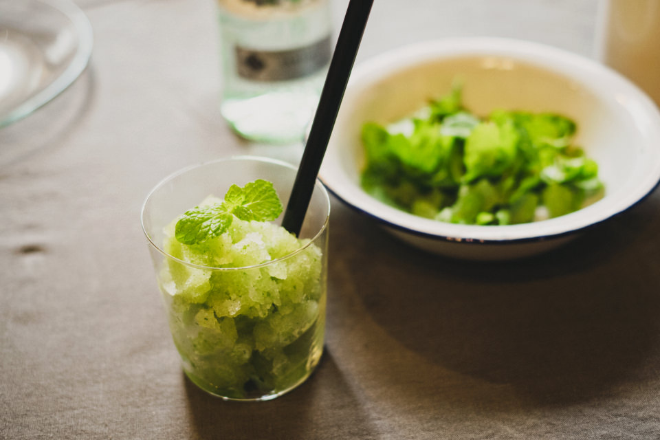 テーブルセッティングをしてゲストが到着したら、「カプセルカッター キャトル」で夏にぴったりの「フローズンモヒート」を作ります。ミントの葉ごと撹拌すると、パーティーを華やかに彩る、爽やかな色合いに仕上がります。