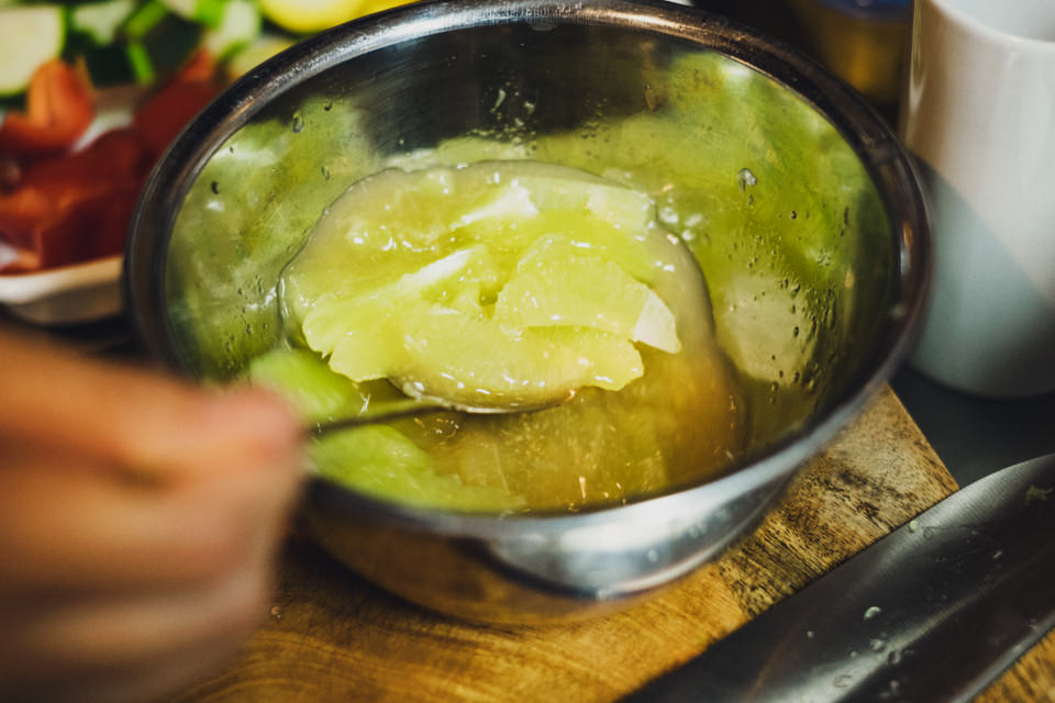 N:旦那さんは全く飲めないので、いつも私だけ飲んでいます(笑)。うちは夫婦ともに夕食ではあまりお米を食べないので、そうすると酒のツマミも兼ねて2、3品作ることになって、必然的に料理のレパートリーも増えていったのかもしれません。普段はワインを飲むことが多いですが、今日はお酒を飲めない友人も来るので、アルコールなしでも楽しめるドリンクにしました。フローズンで食感も楽しいので、絶対みんな好きなはずです!