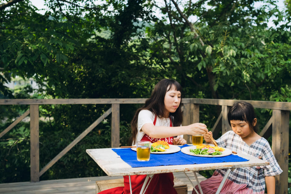 今回会いに行ったのは、都内から神奈川県相模原市に引っ越したばかりの中村暁野さん。中村さんは、ひとつの家族を1年にわたって取材する雑誌『家族』の編集長として雑誌作りに携わりながら、現在2人のお子さんの子育て真っ只中。そんな中村家の休日にお邪魔して、娘さんの花種(かたね)ちゃんとご自宅のウッドデッキで一緒に食べる、ドライカレーランチを作っていただきました。