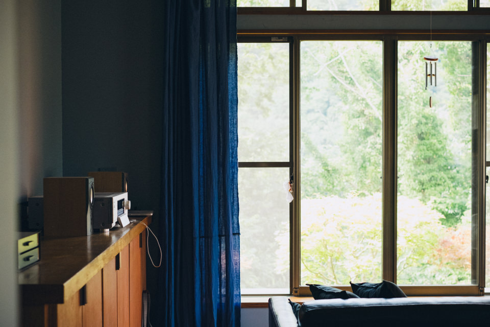 N:娘の小学校入学のタイミングで東京からこっちに越してきたので、ちょうど今年の4月です。このお家は、もともとバブル期につくられた別荘だったそうです。運よく出会うことができて、いまは家族で徐々に改装しています。このリビングも、2部屋に仕切っていた壁を取り除いて、広く使っています。ただ、まだリビングしかできていなくて……。リビングが整って喜んでも、廊下に出た途端「うわーっ、まだまだだね……」て夫婦で落胆しています(笑)。