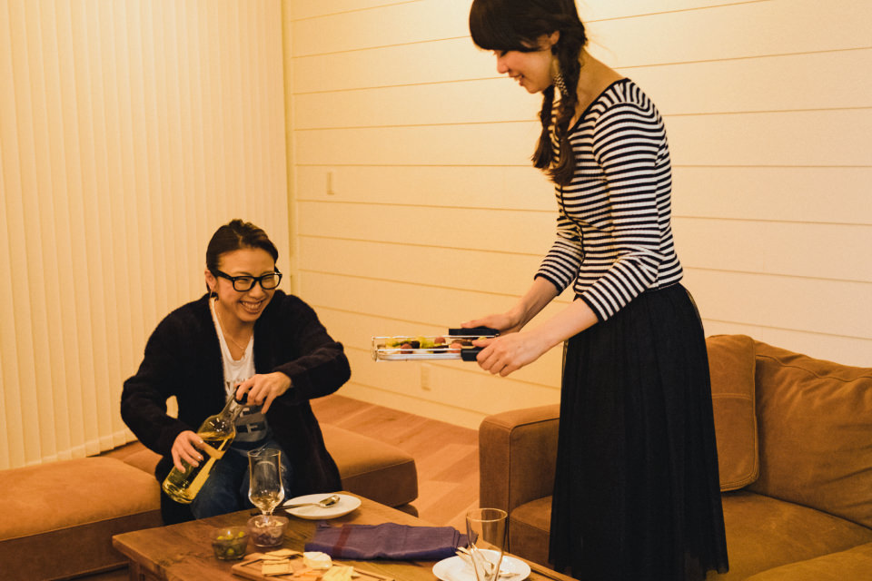 I:仕事の日は各々のペースがあるので、自分のプライベートスペースで過ごすことが多くなります。お友だちをよぶルールや、掃除、スケジュールの共有などいくつか最低限のルールはありますが、変な上下関係もなく、みんな基本的には自分のペースで気楽に過ごせていると思います。これまで誰も喧嘩をしたことないのが自慢です(笑)。ひとり暮らしと違うのは、社員寮なので会社の人が遊びに来ることも多く、歓送迎会を開催することもありますし、ここで暮らしている私たちは、月に一度くらいのペースで女子会をして楽しんでいます。 夏はこの近くで花火大会があって、目の前に大きな花火が上がるので、その日はみんなで屋上に上がって花火を見ながら持ち寄った料理を楽しんだり。とっても気持ちいいですよ。最近はみんな忙しかったので、今日は久々の女子会です!