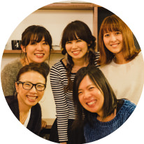 左上から時計回りで船田美里さん、岩間千恵子さん、小堀明日香さん、鈴木舞美さん、正岡めぐみさん。ハンプティーダンプティーの本社に勤め、それぞれ、商品部でバイイングや、店舗運営部で店舗の運営や販促ツールの制作などを担当。現在はシェアハウスに8 人で暮らしている。