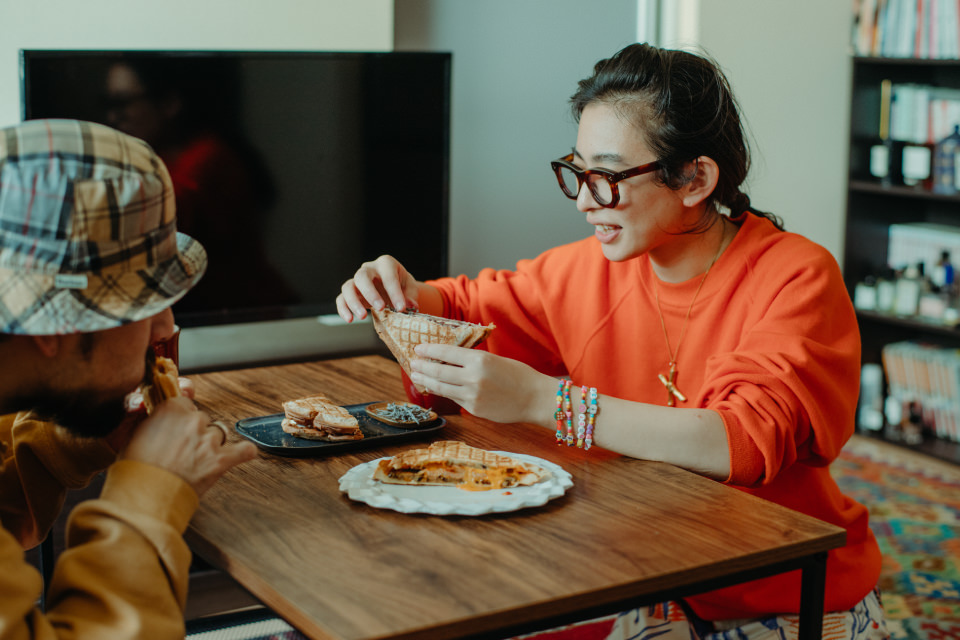 Y:料理本などを参考にしたり、外食しておいしかったものを作ってみることが多いですね。「コレとコレを入れたらあの味になるなぁ〜」と想像しながら味付けしています。ほとんど感覚ですが「大丈夫、おいしくなるはず!」と信じて料理していることが多いですね(笑)。今日のホットサンドもきっとおいしくできるはずです!