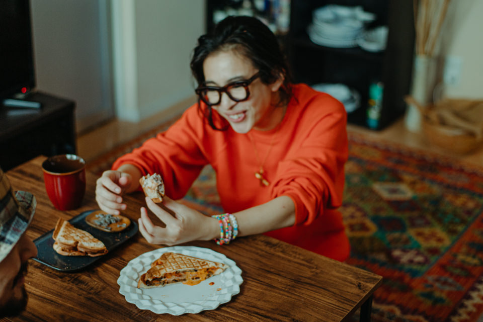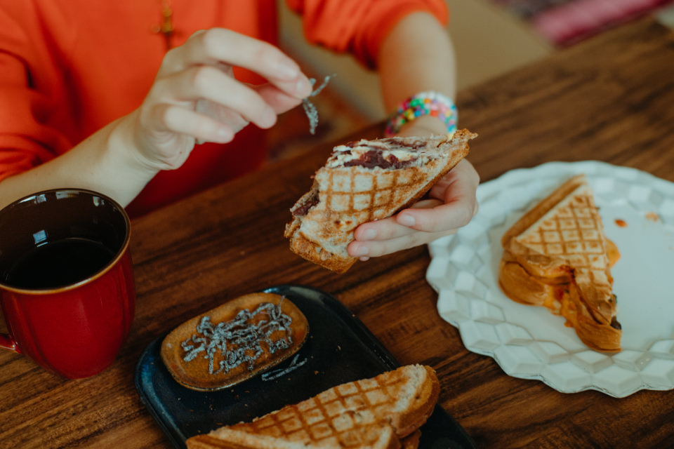 Y:調理家電って今まで持っていなかったんですけど、使ってみたらすごく便利で驚きました。[プレスサンドメーカー プラッド]はボリュームのあるホットサンドが簡単にできるので、実はお弁当にも使っているんです。冷蔵庫にある具材をはさんで、忙しい朝でもサッと作れるので重宝しています。ベーシックなハム&チーズのホットサンドをまだ作っていなかったので今度作ってみます!