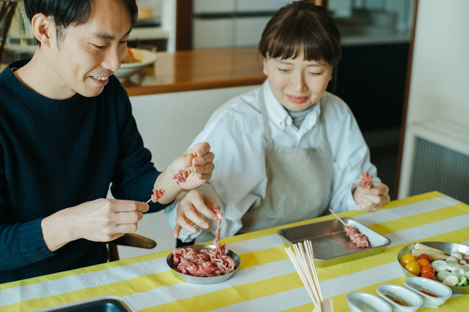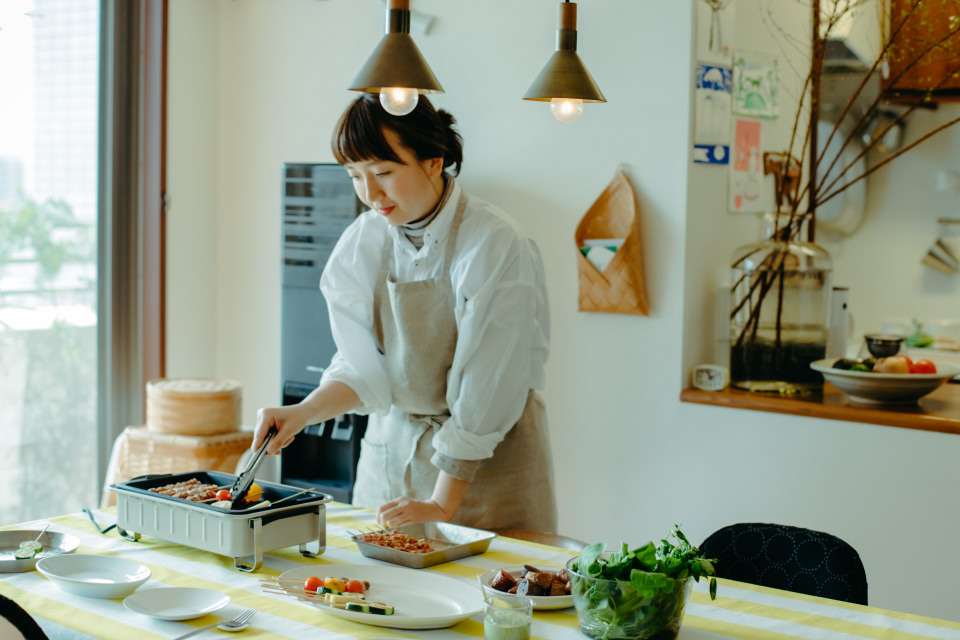 今回会いに行ったのは、レシピサイト『for LIFE KITCHEN』を運営する引田あずみさんご夫妻。独身の頃からアウトドアが大好きだったという引田さんは、結婚してからは4歳の愛娘・つむぎちゃん、夫の大さんと3人でキャンプへ行き、バーベキューを楽しんでいるそう。今日はご自宅へお伺いし、いつものバーベキューをお家で再現! キャンプ気分を味わいながらワイワイ盛り上がれる、2つのメニューを作っていただきます。